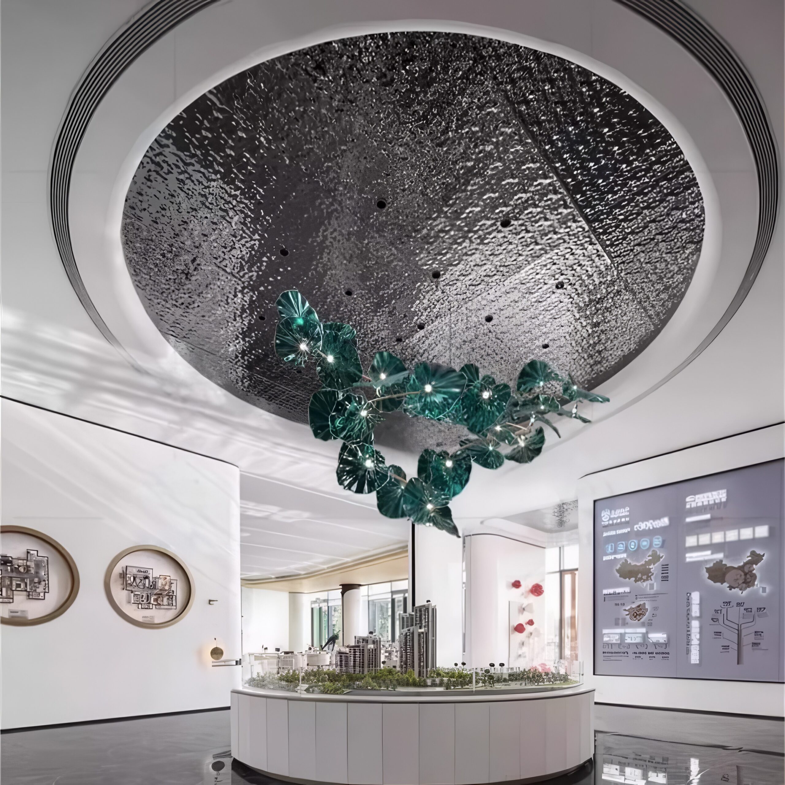 AQUAMARINE преображает просторные помещения, становясь их изысканным центром. В гостиных и столовых она наполняет пространство мягким переливающимся светом, а в холлах раскрывает всю глубину своего цвета, создавая ощущение воздушности.