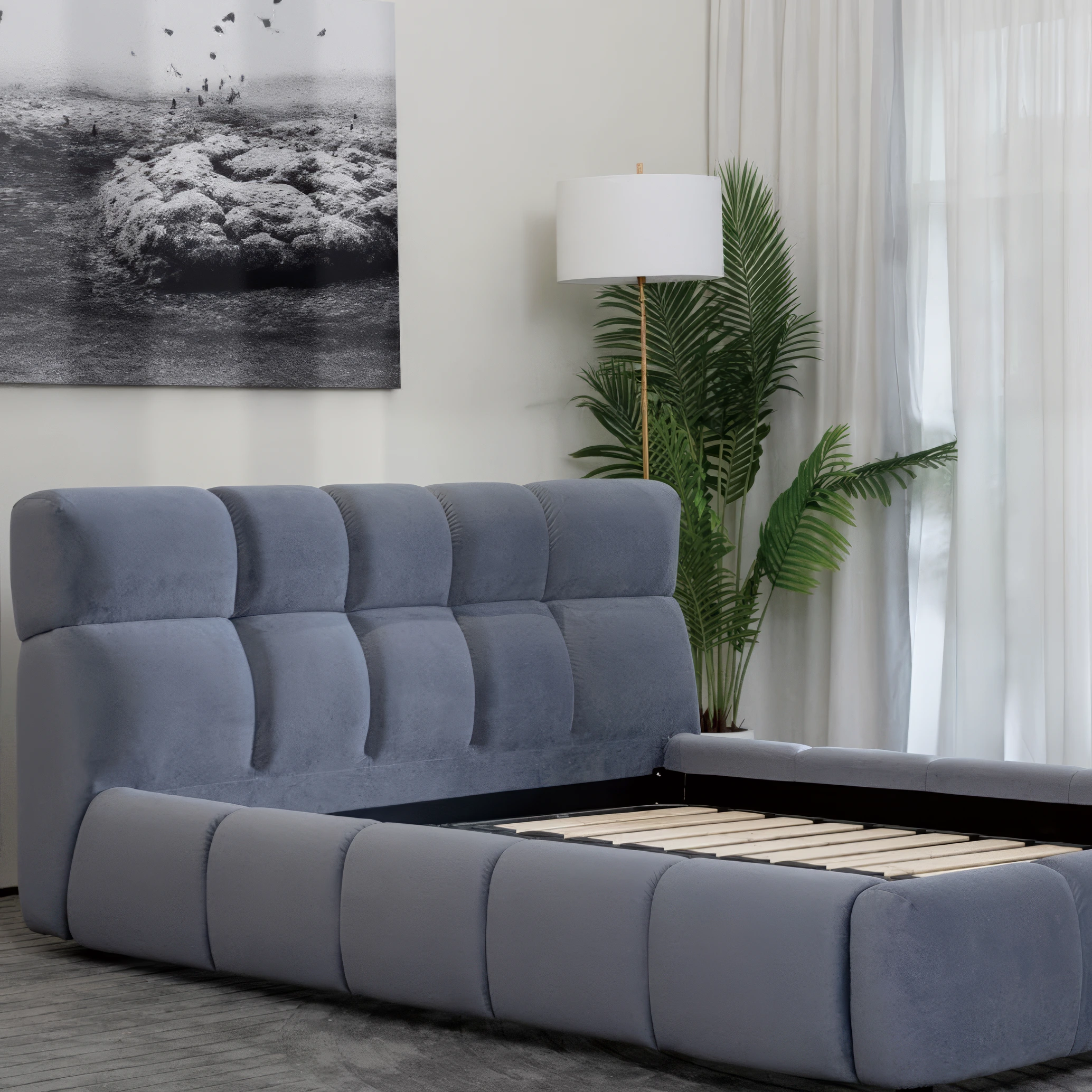Погружайтесь в мир изысканного комфорта с нашей роскошной кроватью из велюра.