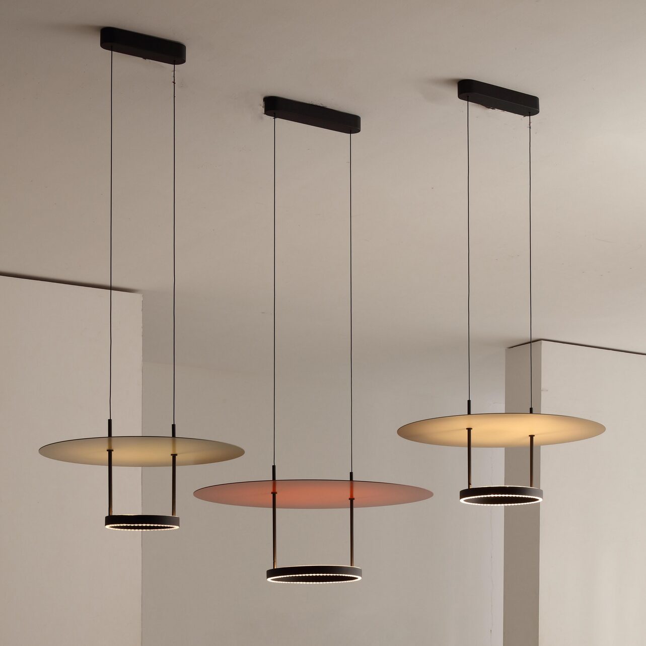 DISCOLUX — подвесной светильник в современном стиле, вдохновлённый формой совершенного светового диска. Минимализм металла утончённо оттенён акриловыми инкрустациями, придающими светильнику оригинальный, запоминающийся вид. Прозрачный акрил гармонично интегрирован в конструкцию, образуя яркий контраст с матовой металлической поверхностью и создавая выразительную игру света и тени.