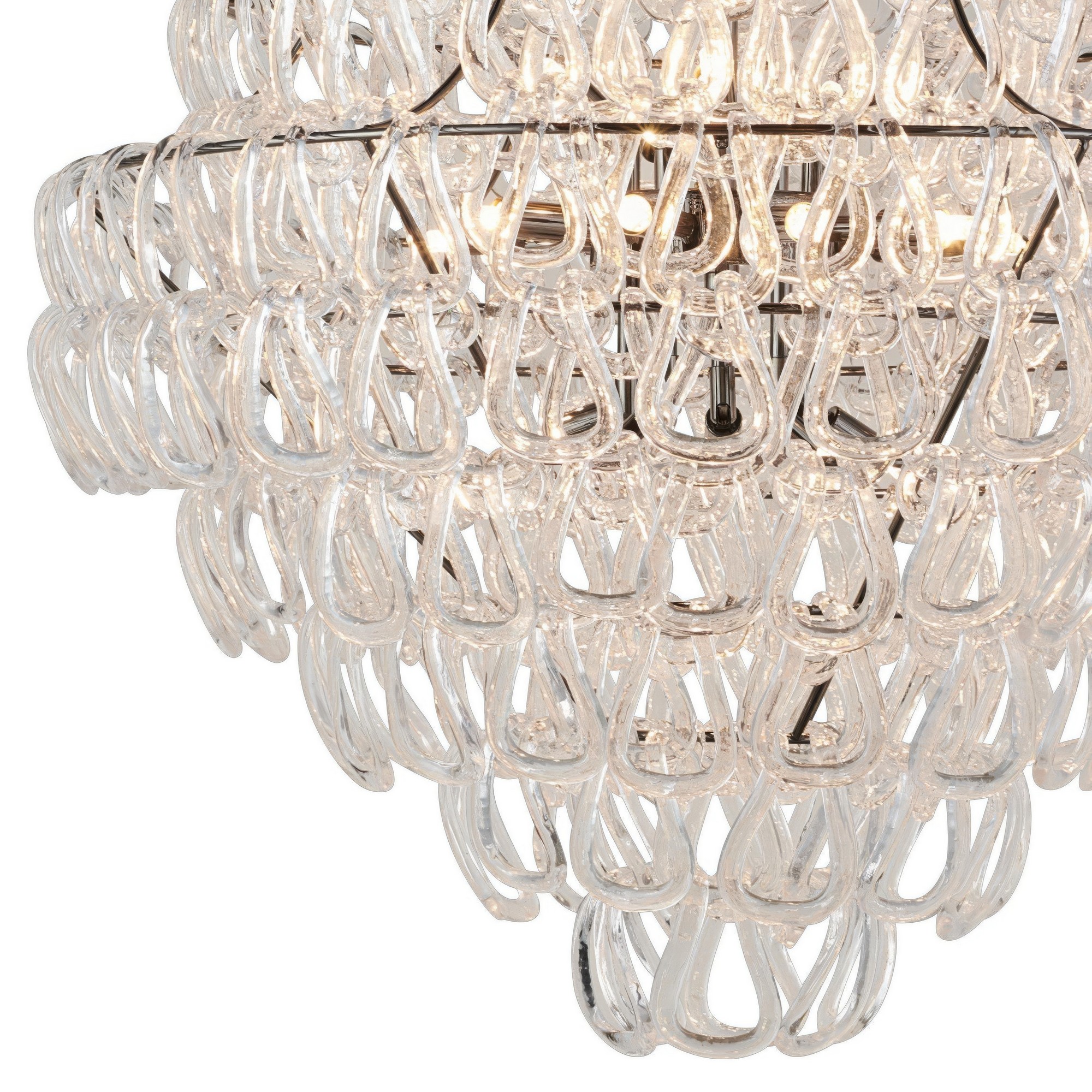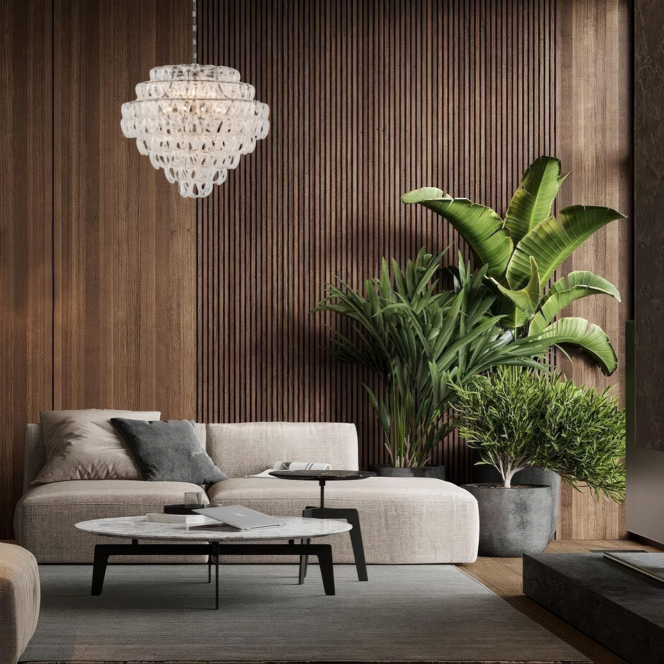Серия светильников GLEAM — это воплощение современной пластики в стекле. Объемные силуэты напоминают изящные драпировки или цепочки, спадающие плавными волнами, а их световые переливы превращают пространство в игру бликов и тени. Каждый светильник мгновенно становится художественным акцентом, придающим интерьеру ощущение динамики и легкости.
