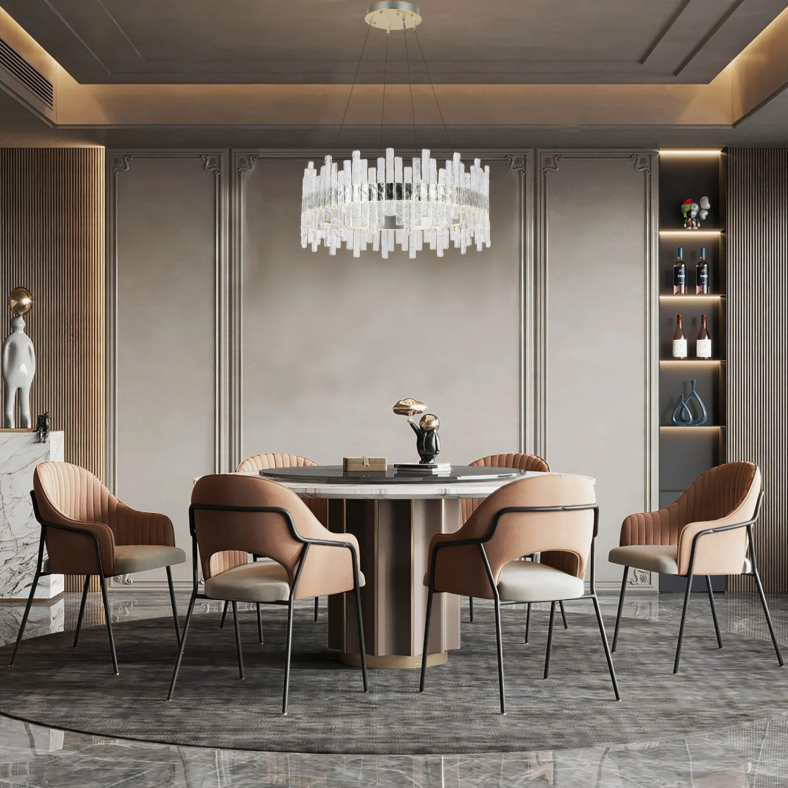 Коллекция ICEBERG включает множество вариантов световых решений: от изысканных люстр разных форм и диаметров, подвесных светильников для обеденных зон, мощных соло-подвесов для залов и холлов до настольных ламп, бра и напольных торшеров. Серия легко интегрируется как в современные минималистичные интерьеры, так и в роскошные публичные пространства, задавая тон всему окружению и превращая свет в главную атмосферную составляющую.