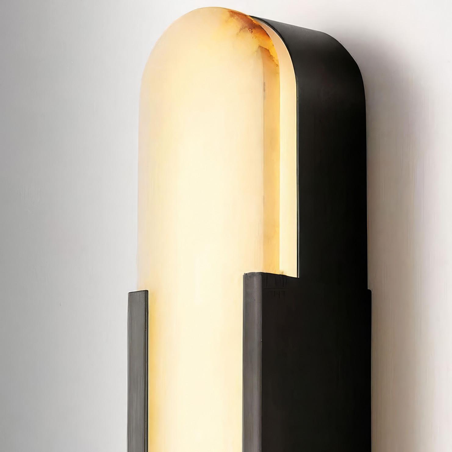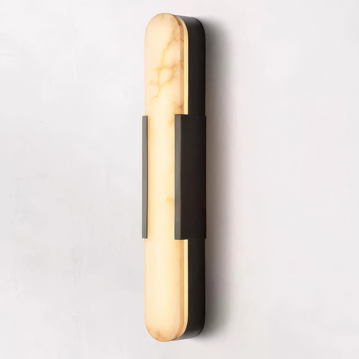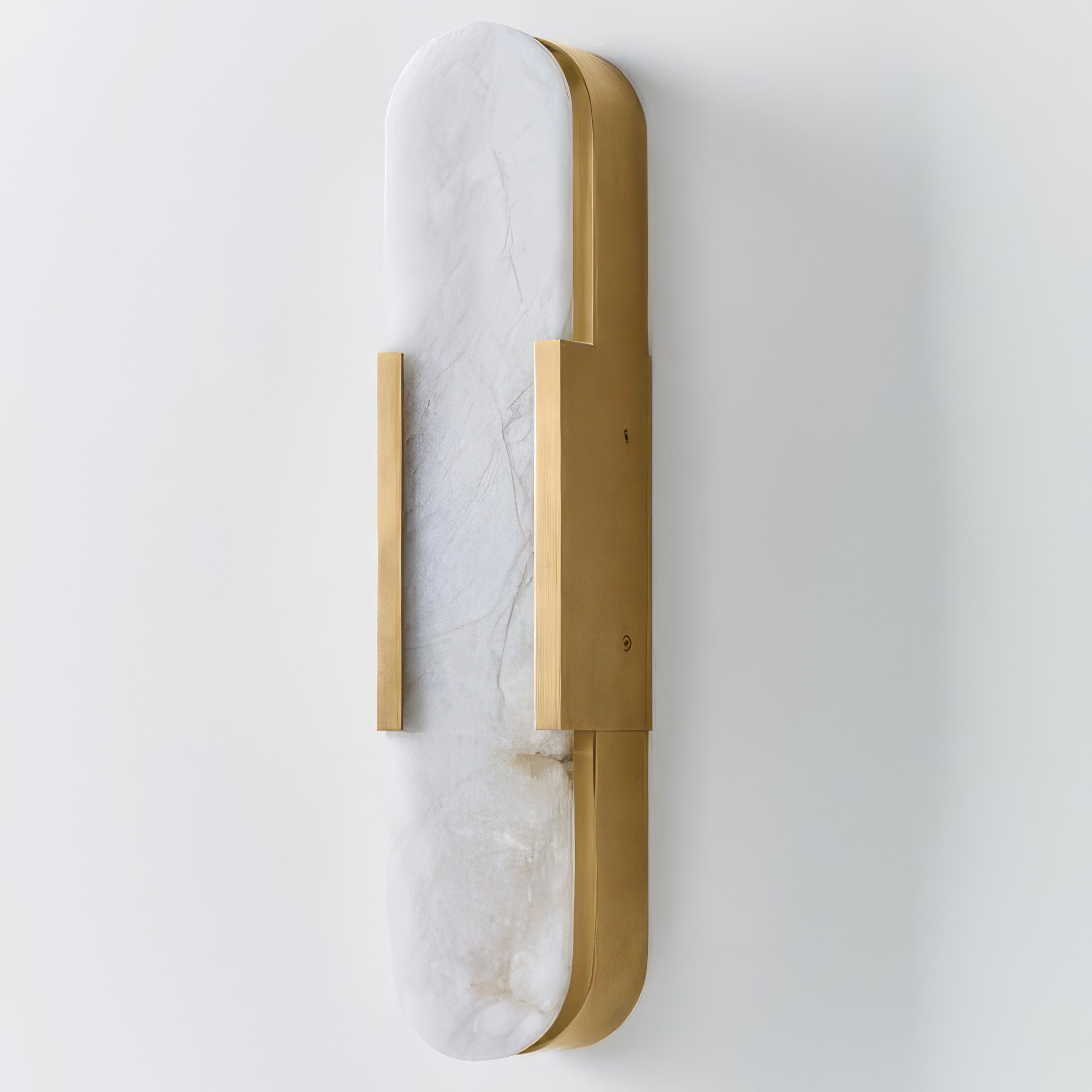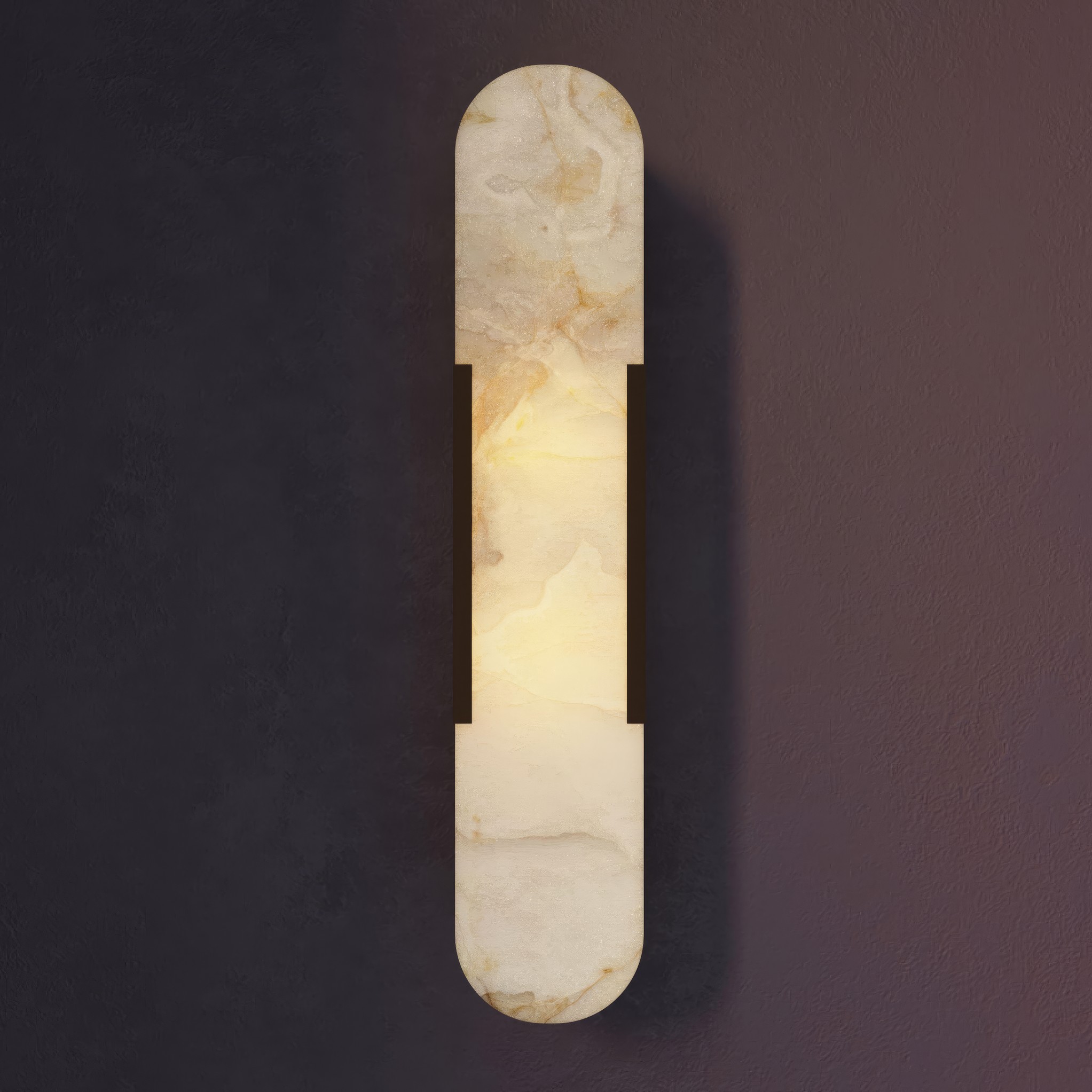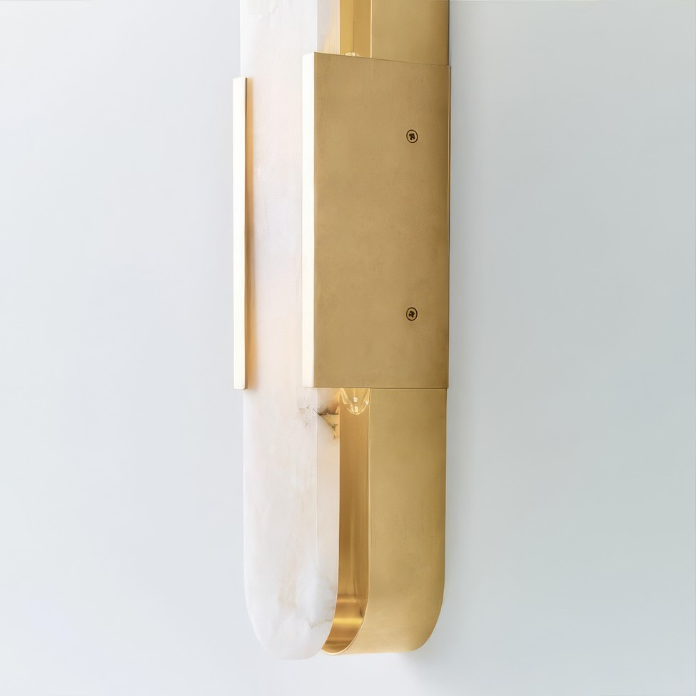 Бра INTEGRA сочетает природную красоту алебастра с чёткими линиями современного дизайна. Вытянутая овальная форма со скруглёнными краями выглядит строго и элегантно. Металлическая рамка подчёркивает форму и добавляет яркий акцент.