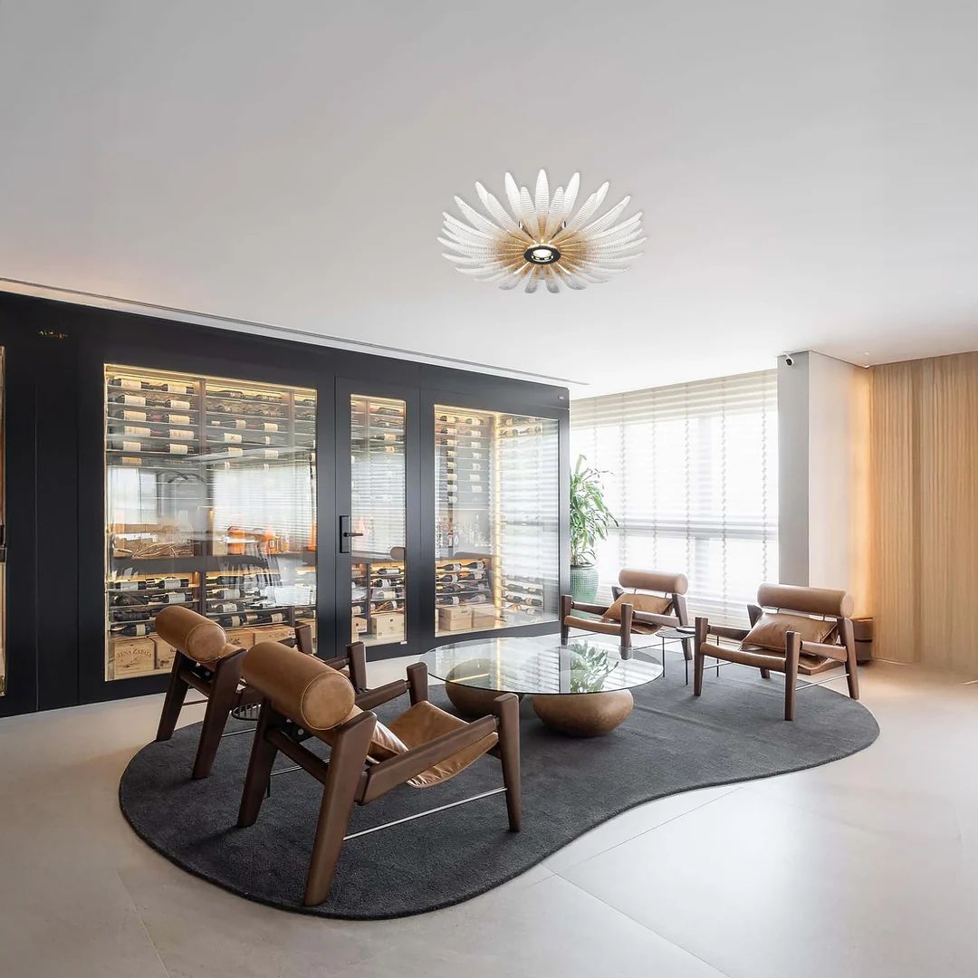 LOTUS SHINE органично впишется в светлые современные интерьеры, пространства с восточными мотивами или природными акцентами. В серии представлены люстра, потолочная люстра и бра, позволяющие создавать цельные композиции, где свет становится центральным элементом атмосферы.