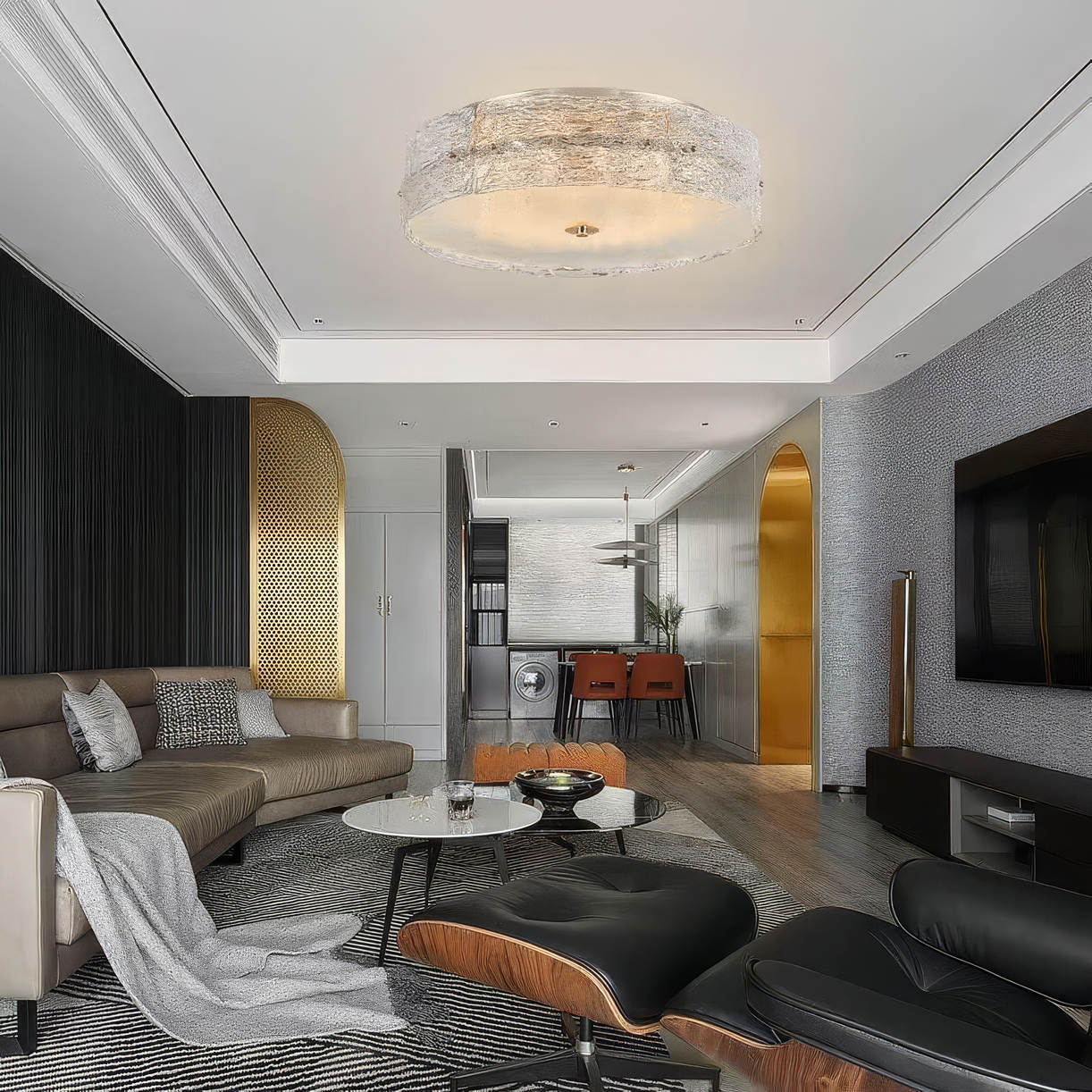 В интерьере MELTORIA становится центром композиции: её сияние мягко структурирует пространство, добавляя глубины и утончённого акцента, будь то уютная гостиная или просторный зал. Коллекция представлена в нескольких размерах и формах, что позволяет интегрировать светильники как в камерные, так и в масштабные помещения.