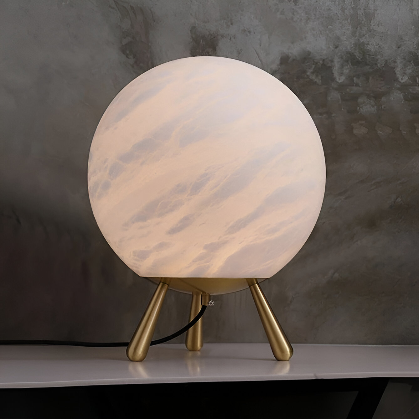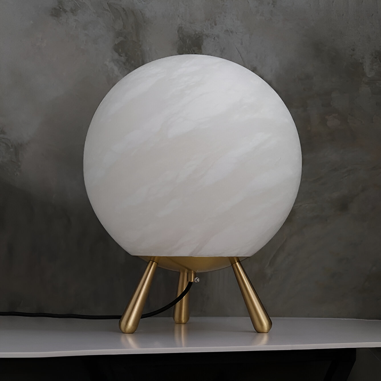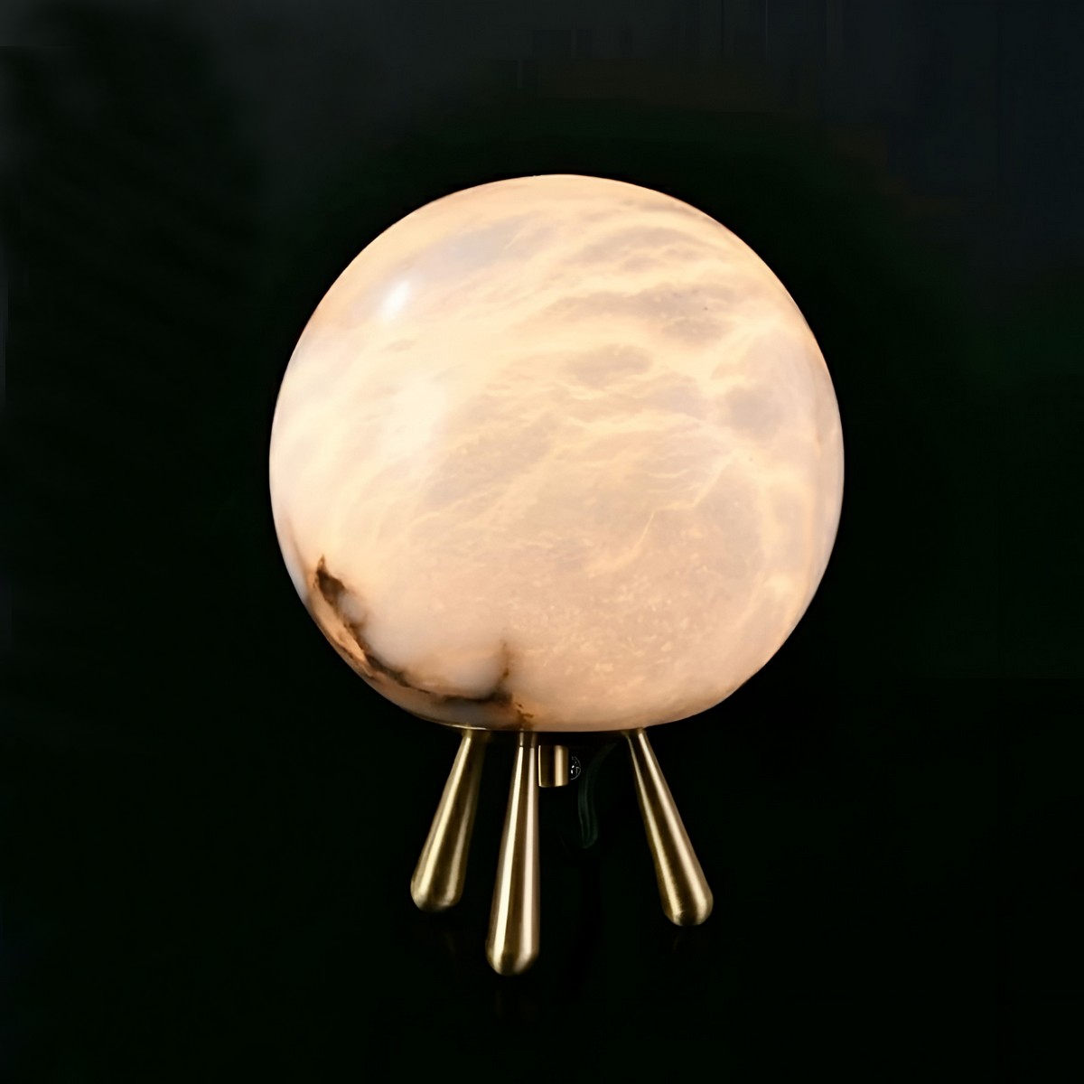 Настольная лампа MOONSET переосмысливает классическую сферическую форму благодаря трём изящным ножкам, которые придают композиции лёгкость и динамику. Полупрозрачный плафон из алебастра напоминает поверхность луны, а мягкое сияние наполняет комнату атмосферой уюта и загадки.