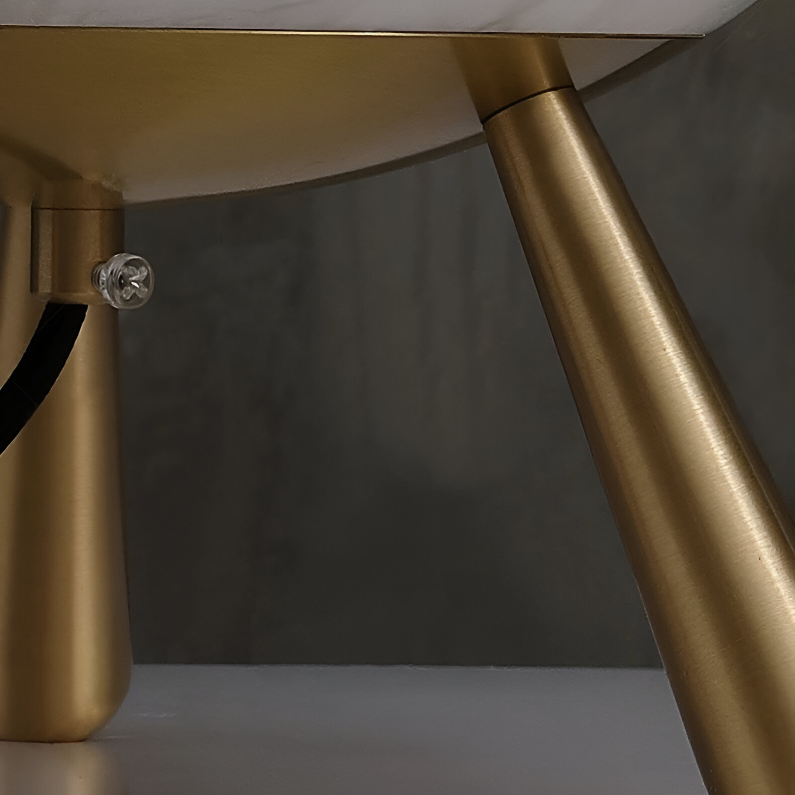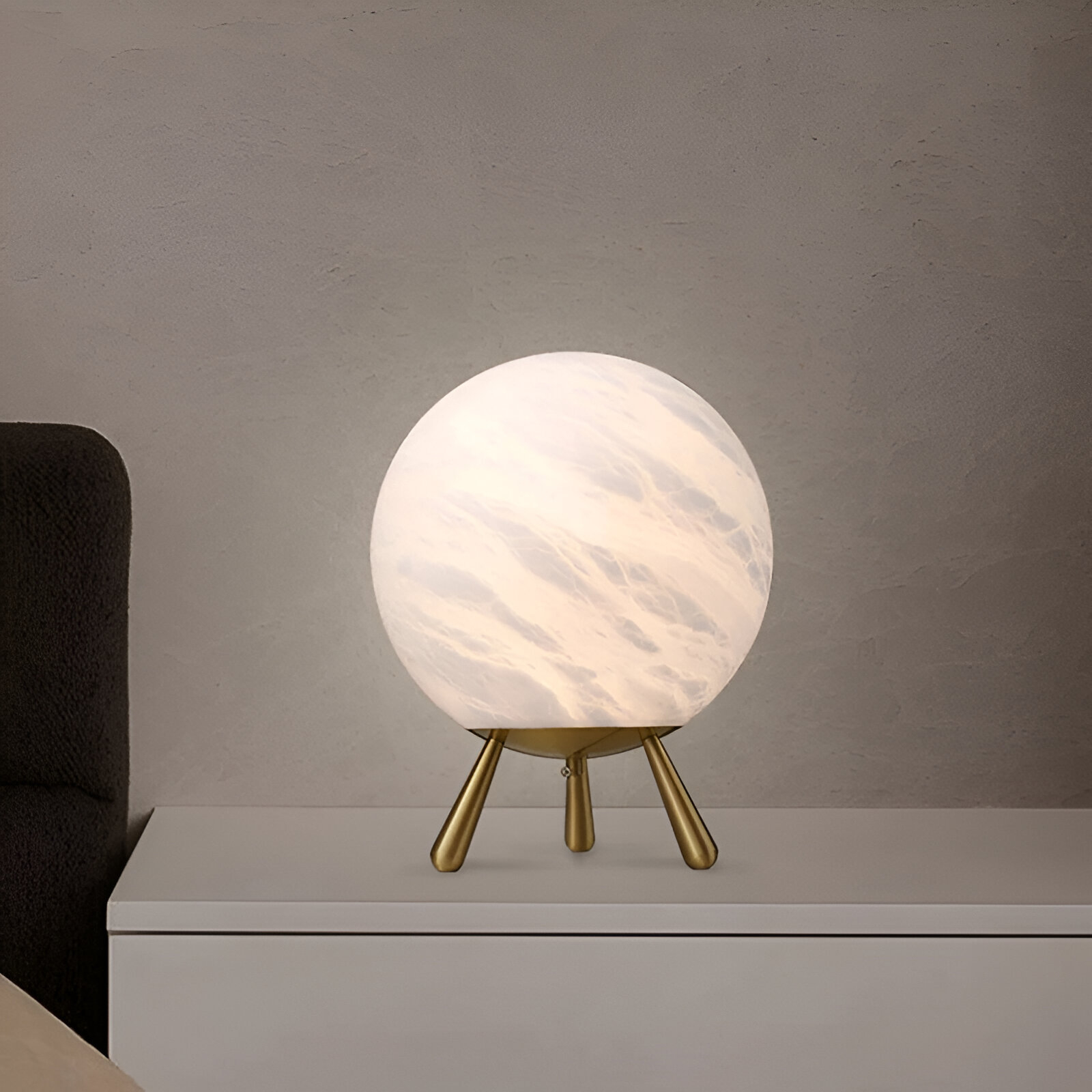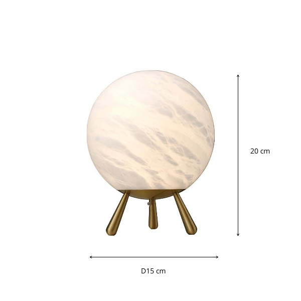 Настольная лампа MOONSET переосмысливает классическую сферическую форму благодаря трём изящным ножкам, которые придают композиции лёгкость и динамику. Полупрозрачный плафон из алебастра напоминает поверхность луны, а мягкое сияние наполняет комнату атмосферой уюта и загадки.