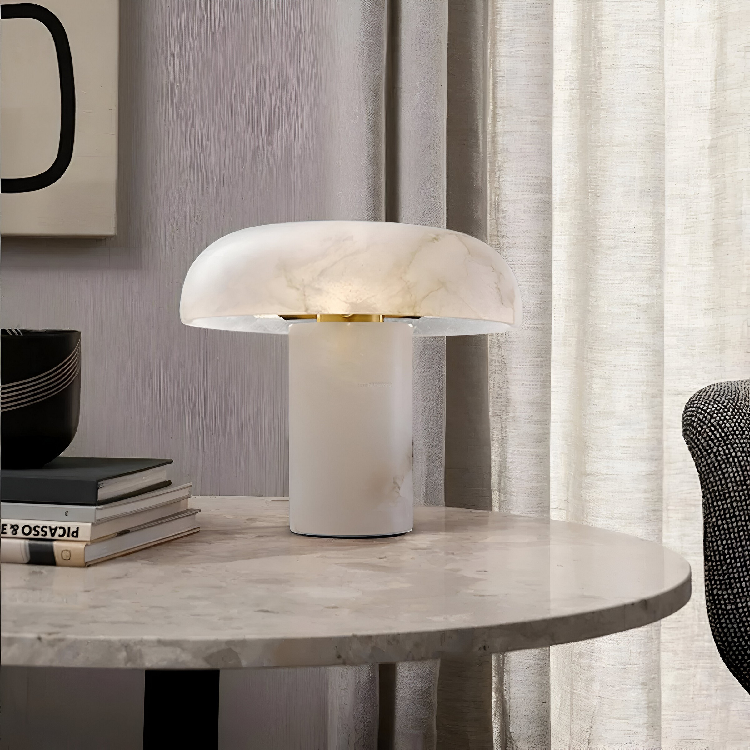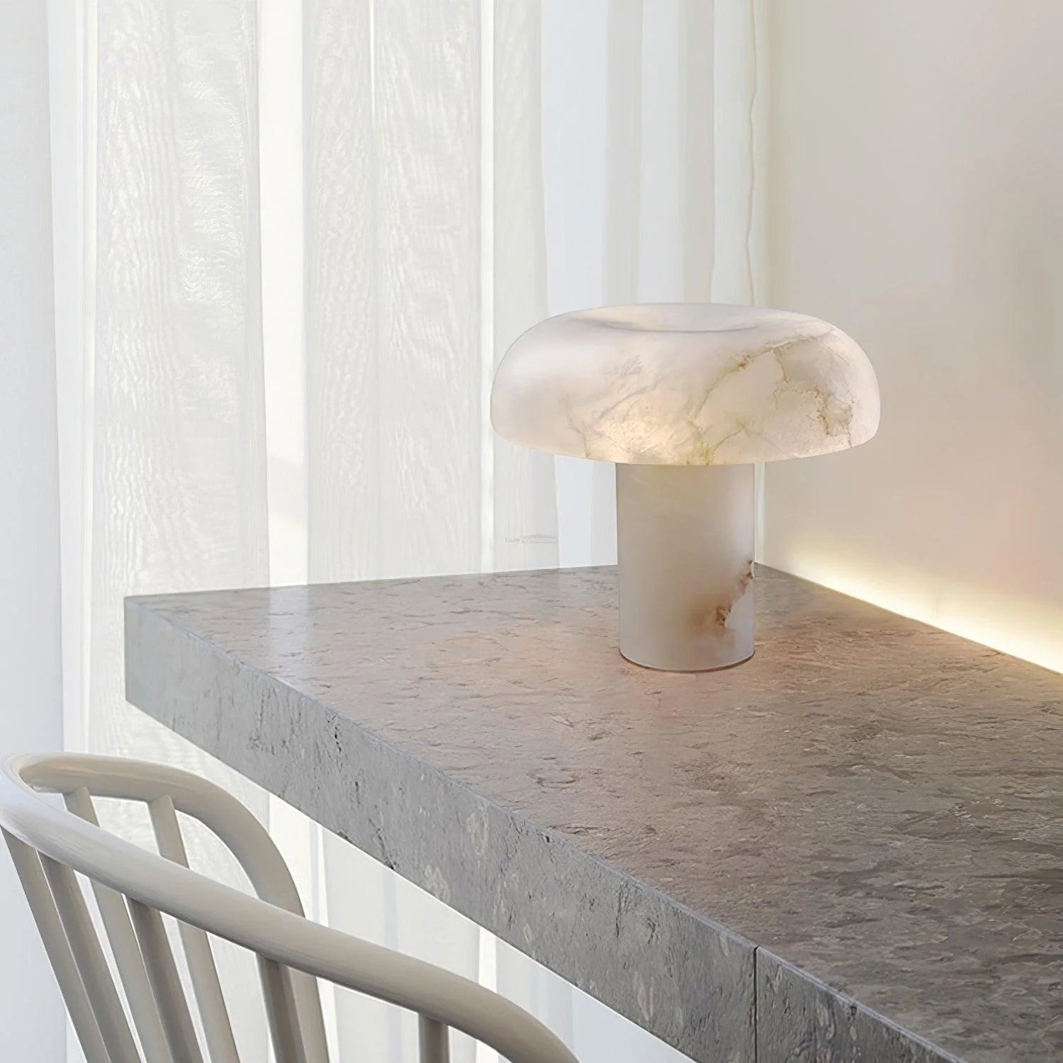 Настольная лампа MYCENA вдохновлена формой дикорастущих грибов и названа в честь одного из самых таинственных обитателей тенистых лесов. Плавный, округлый плафон плавно возвышается над цилиндрическим основанием, создавая запоминающийся силуэт, напоминающий мягкую шляпку гриба. Полупрозрачный алебастр наполняет светильник мягким, рассеянным светом, а природные прожилки в материале делают каждый экземпляр уникальным.
