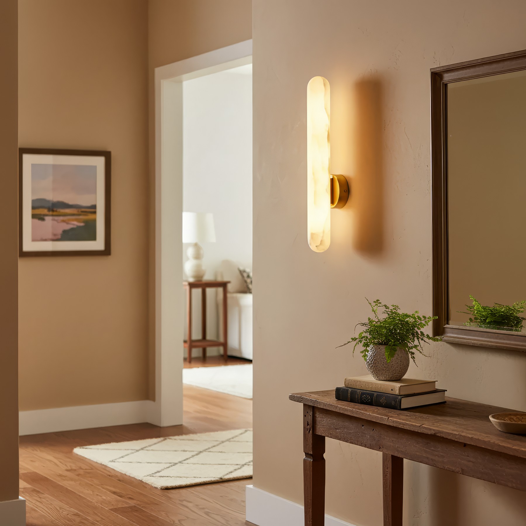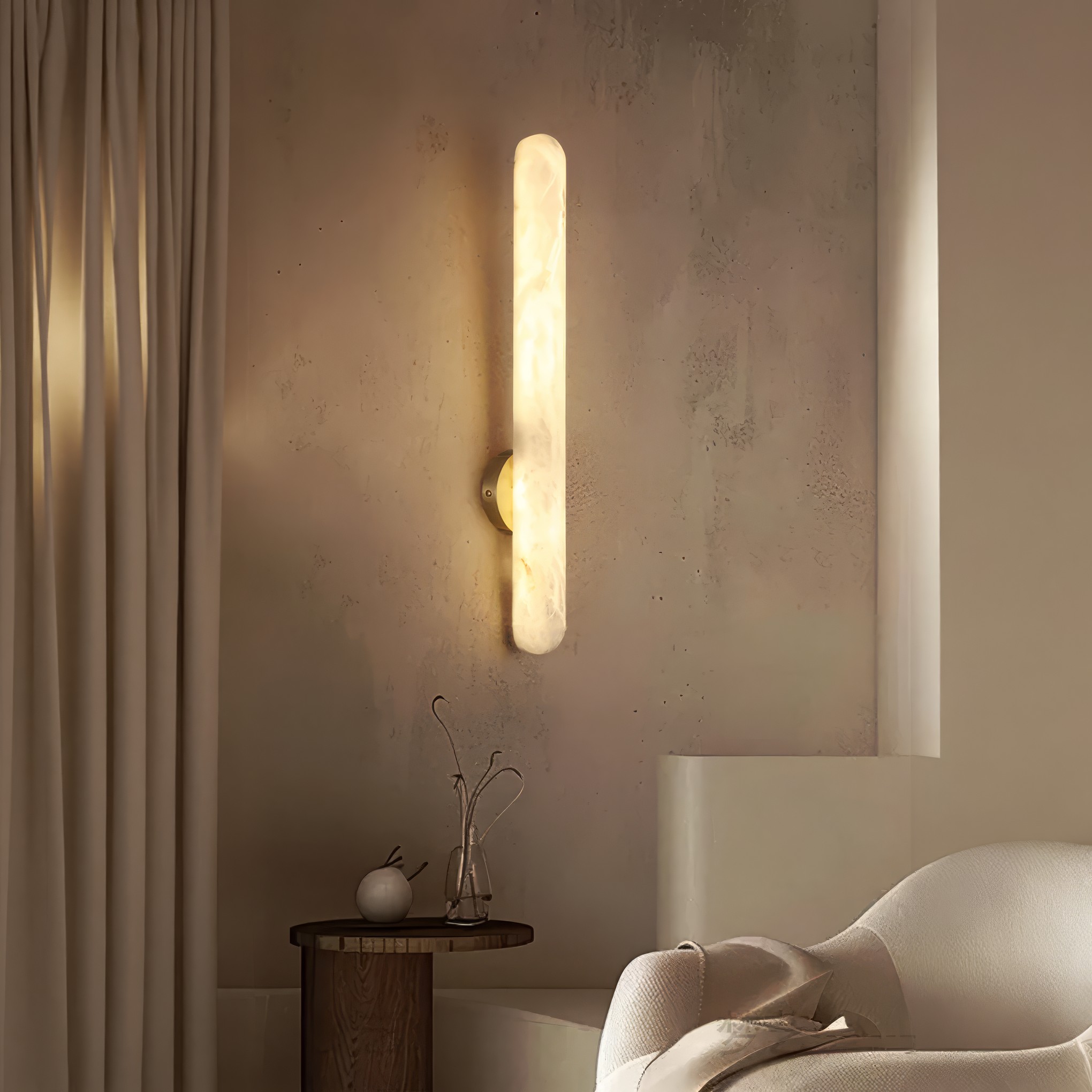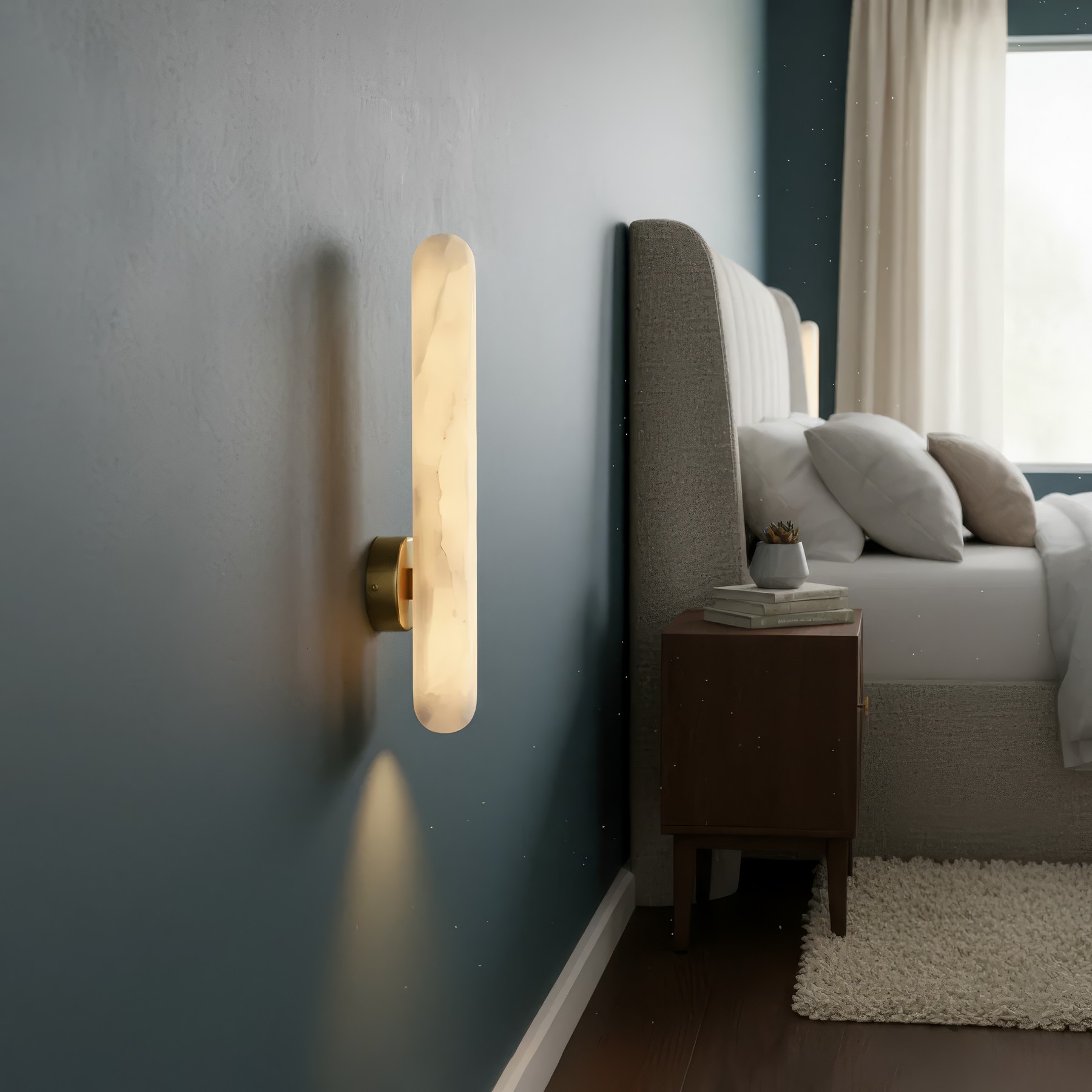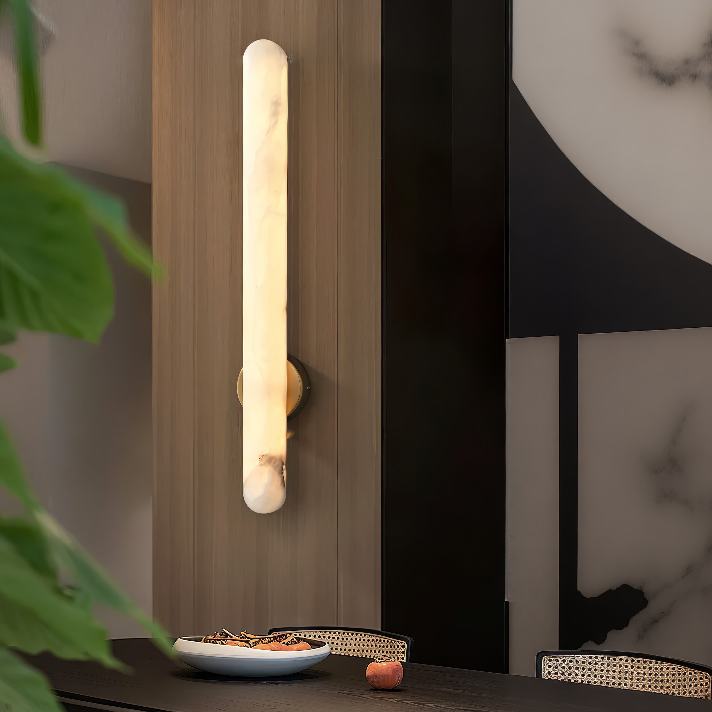 Бра NIVEO — это воплощение сдержанной элегантности и современного дизайна. Его вытянутая цилиндрическая форма с четкими линиями создает в пространстве эффектный вертикальный акцент, визуально приподнимая потолки и наполняя интерьер строгой гармонией. Мягкий матовый свет, струящийся через природный алебастр, превращает светильник в изысканный арт-объект даже в выключенном состоянии.