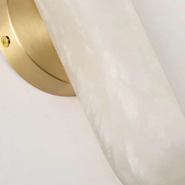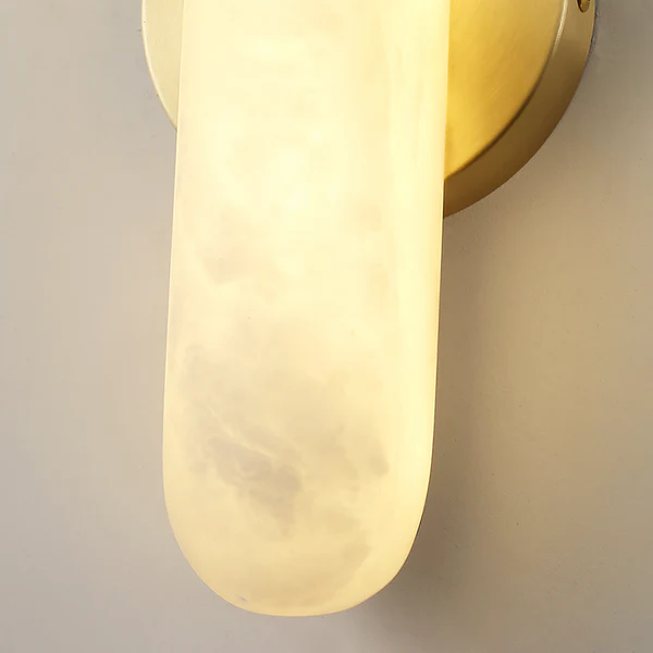 Модель изготовлена из цельного натурального алебастра, чья уникальная структура гарантирует, что каждое бра будет неповторимым. Благодаря внутренней полости светильник обеспечивает невероятно мягкое, рассеянное и комфортное для глаз освещение. Теплое золото латунной основы подчеркивает благородную белизну камня, создавая законченный и дорогой образ.
