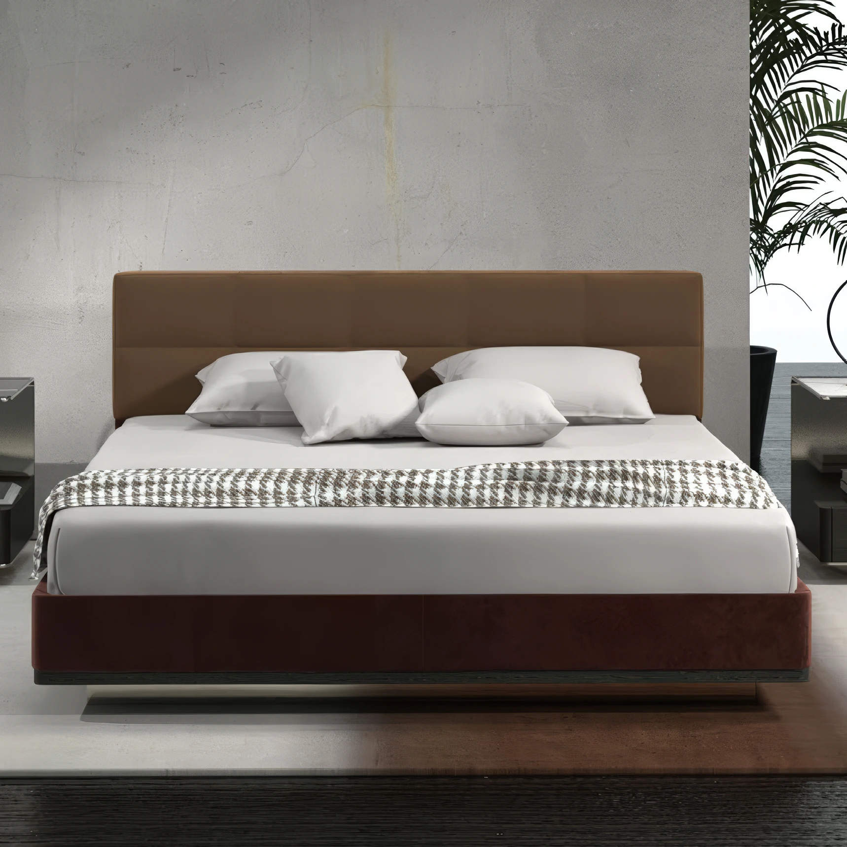 Кровать из замши и американского черного дерева — это идеальное сочетание