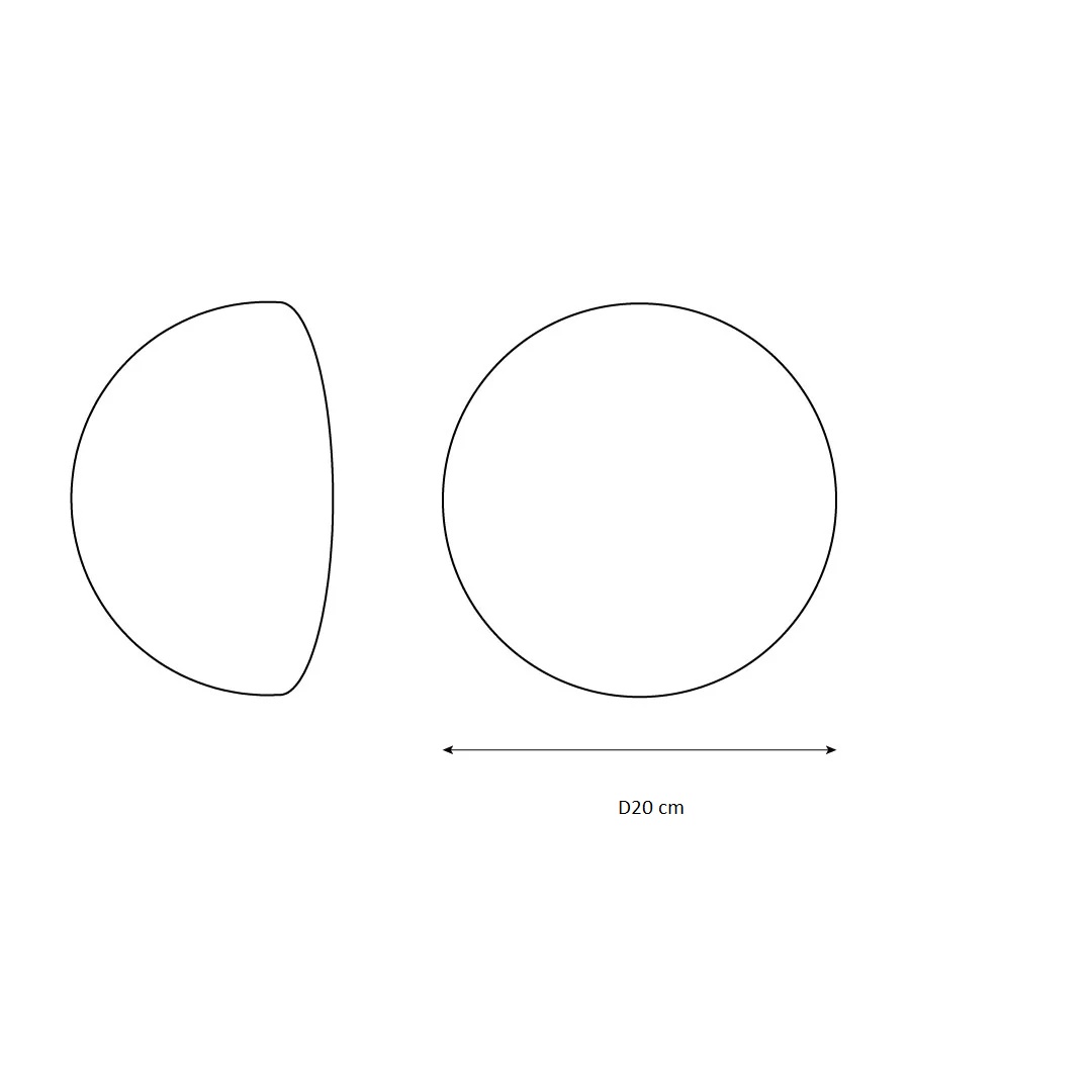 Чистая форма полусферы с безупречными пропорциями. Диаметр 20 см — достаточно компактный для деликатного размещения, но достаточно выразительный, чтобы стать заметным элементом. Идеально работает как самостоятельный объект, так и в составе композиций. Несколько таких светильников, расположенных каскадом, создают эффектную световую динамику. А при встраивании в нишу или углубление RONDO становится органичной частью архитектуры.