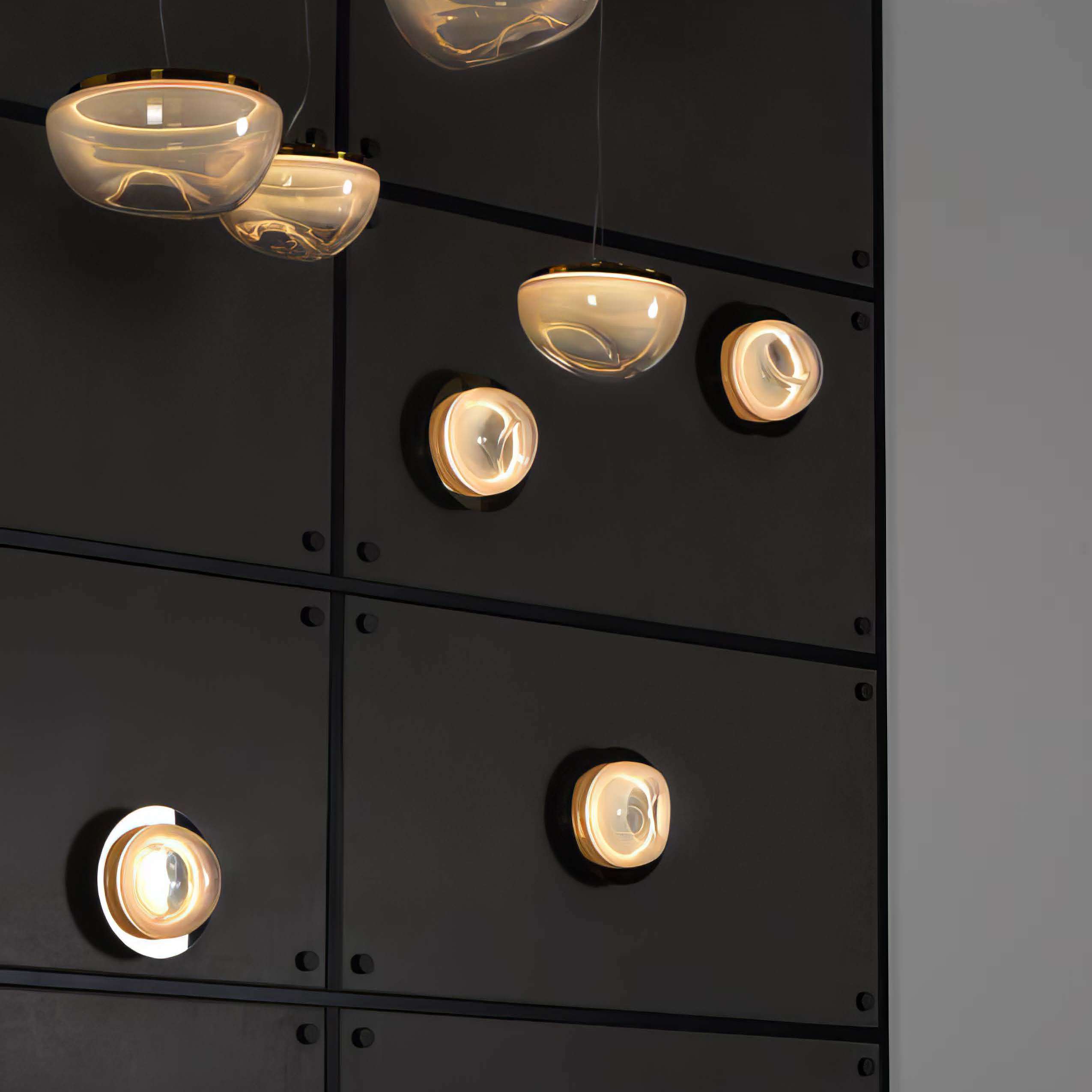 Дизайн серии выполнен с особым изяществом: хрусталь ручной работы и уникальная градиентная обработка цвета создают эффект мягкого перехода от прозрачного света к легкой дымке. Свет, проходя через градиентный кристалл, становится нежным и рассеянным, сглаживая резкие границы и наполняя пространство теплым, почти мистическим сиянием.