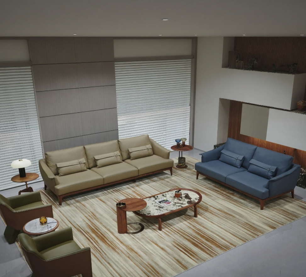 Диван изготавливается из прочной кожи буйвола, которая не только приятна на ощупь, но и устойчива