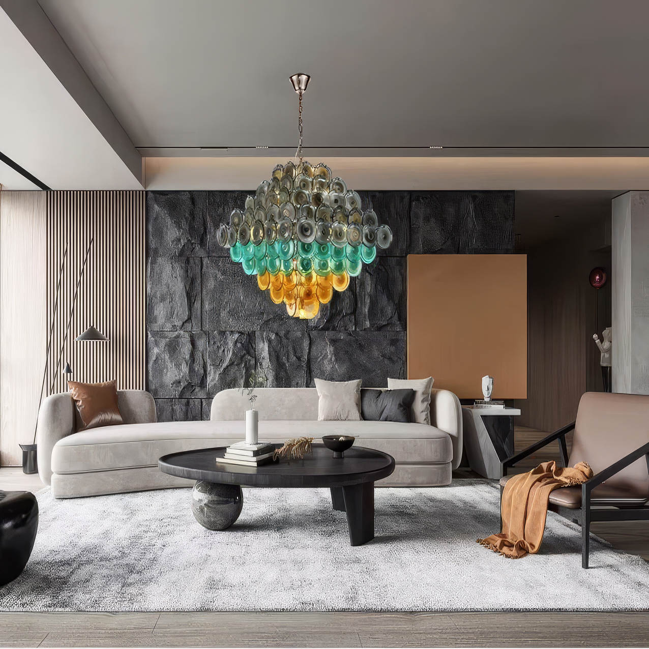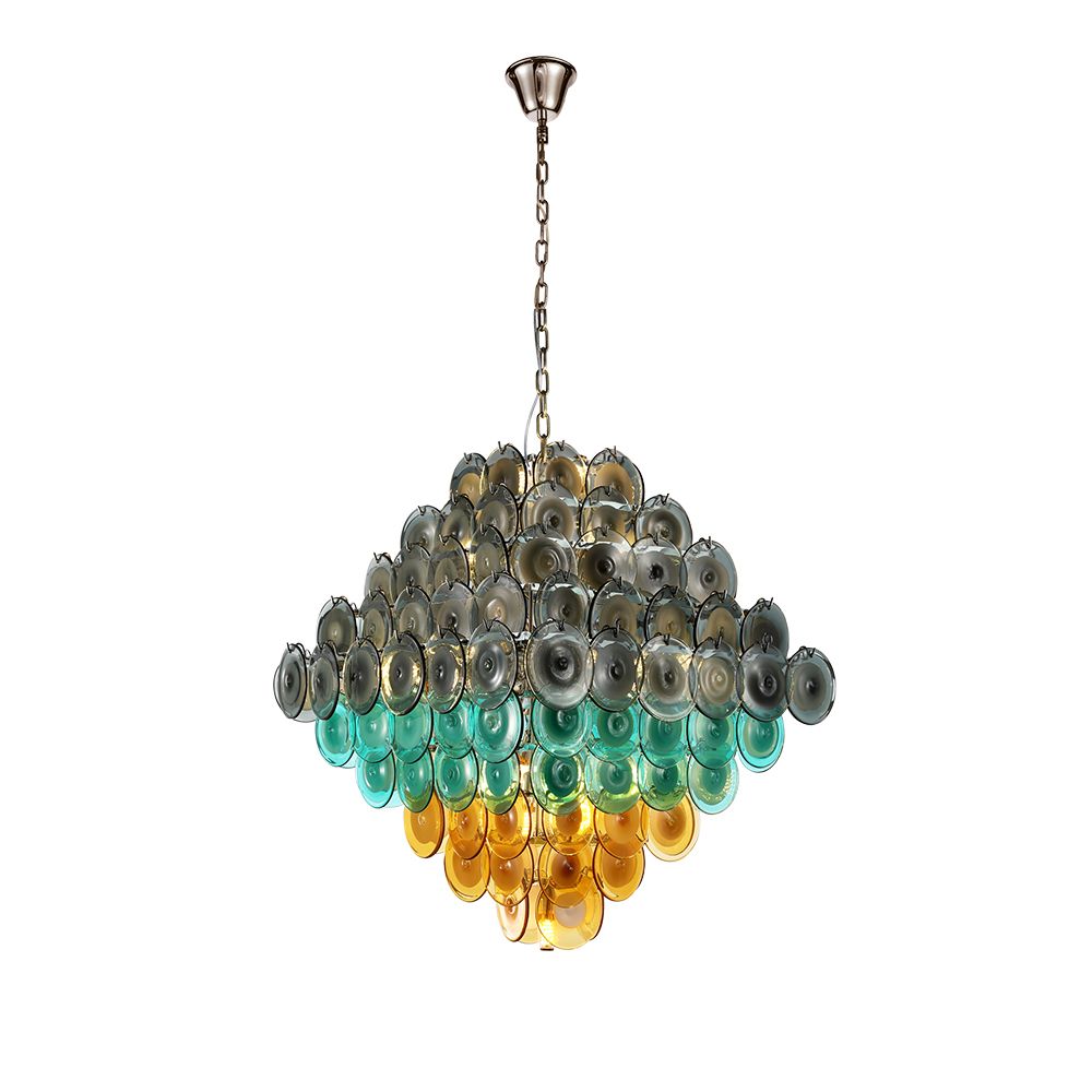 TOKENS CASCADE — название, в котором сочетаются образы света, движения и символической ценности. Token — это не только жетон или монета, но и знак, талисман, символ удачи. Светильники этой серии собраны из стеклянных пластин, напоминающих драгоценные жетоны: каждая деталь словно несёт свою историю и добавляет композиции характер.