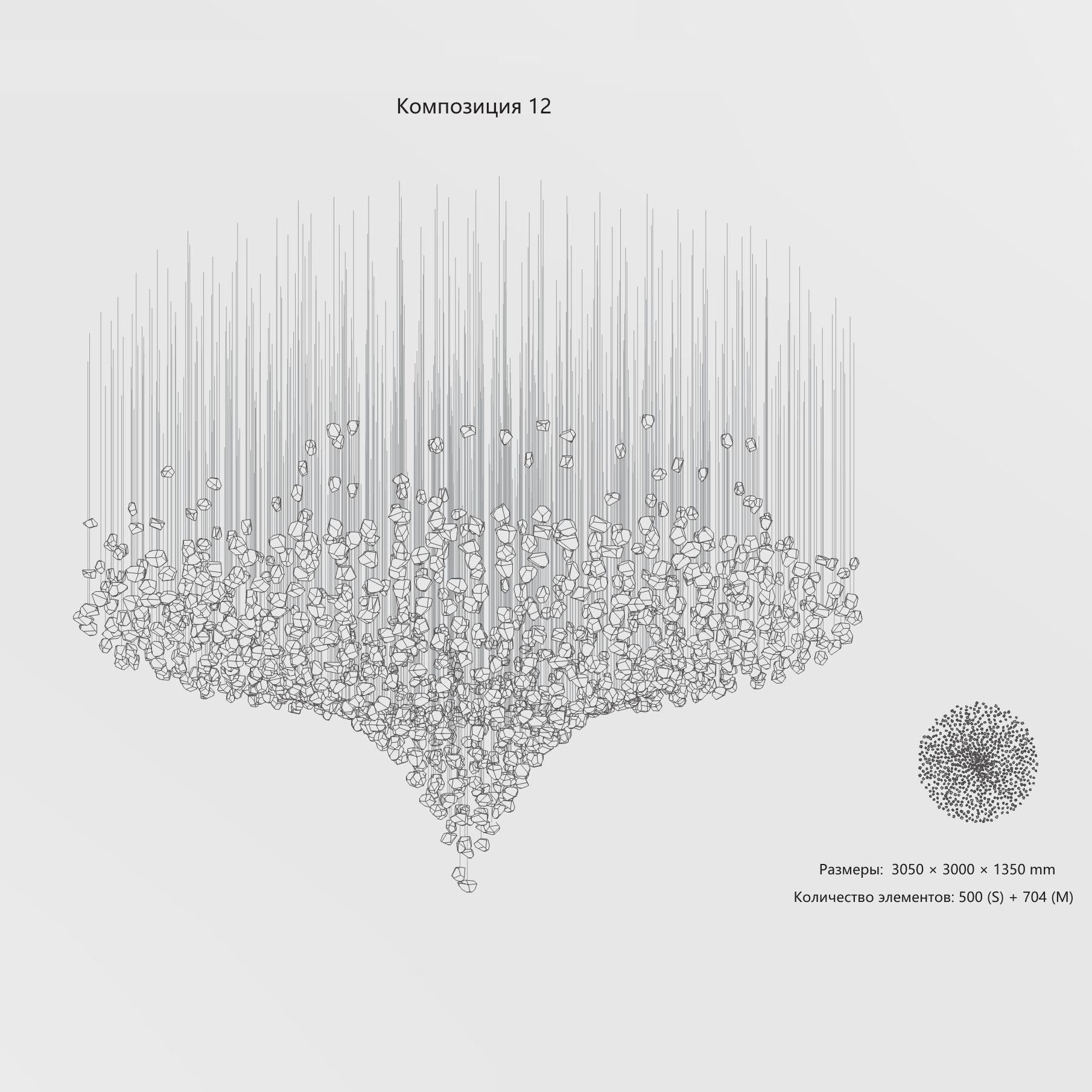 Wild Crystal – подвесная световая инсталляция из хрустального стекла с эффектом натурального кристалла. Специальная технология ручной отливки позволяет воспроизвести сложную текстуру природного скола с максимальной достоверностью.