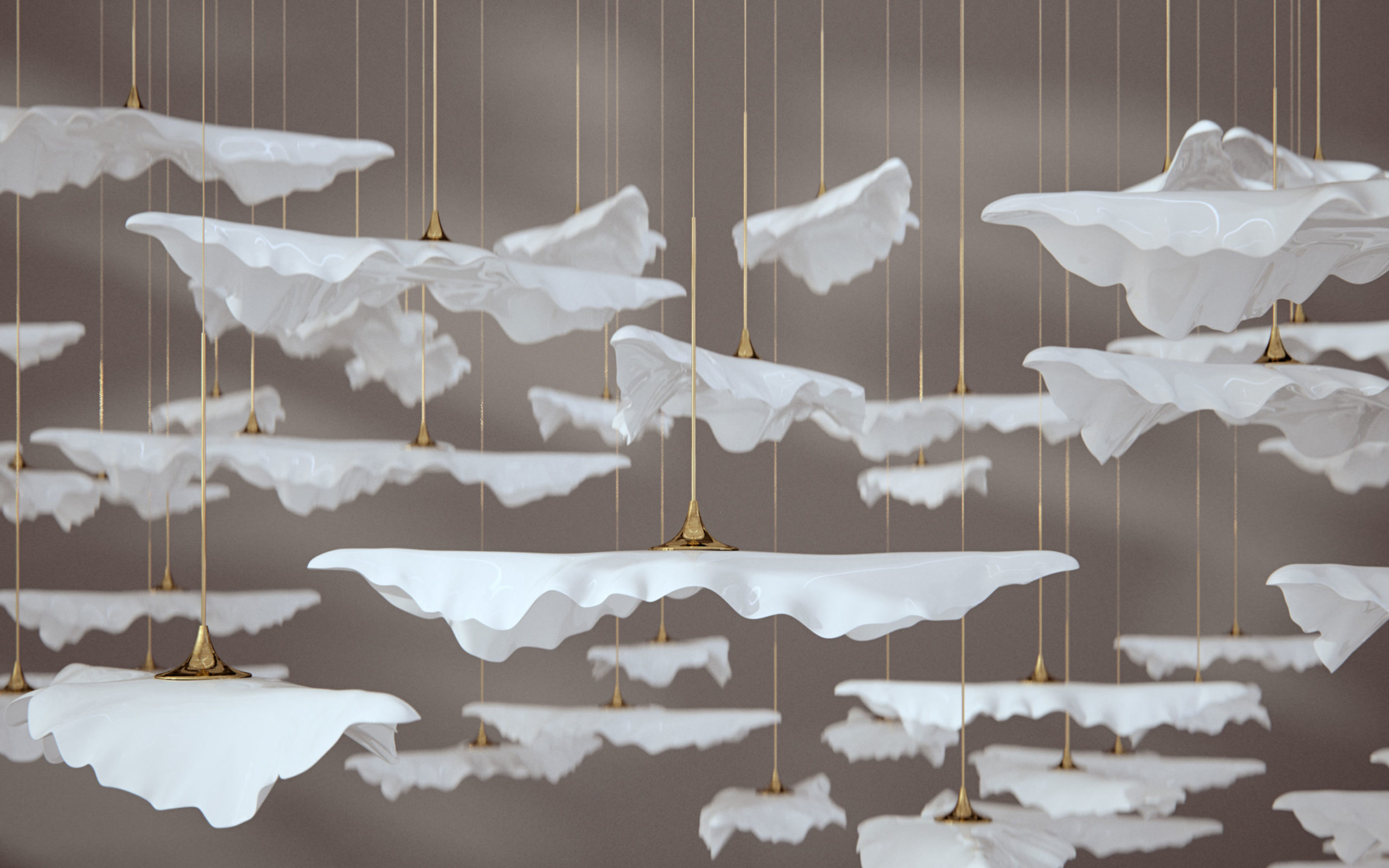 Подвесные светильники представлены в 4-х размерах. Источники света расположены на потолочной панели. Мы используем уникальную технологию изготовления стекла, поэтому наши изделия отличаются высокой прочностью и изысканностью. При желании в композиции можно использовать микро подвески, которые подчеркнут блеск золотых деталей. Вы можете заказать любую из представленных моделей или предложить свои варианты размеров и количество элементов. Подвесы Wind of Silence наполнят помещение уютом и безмятежностью.