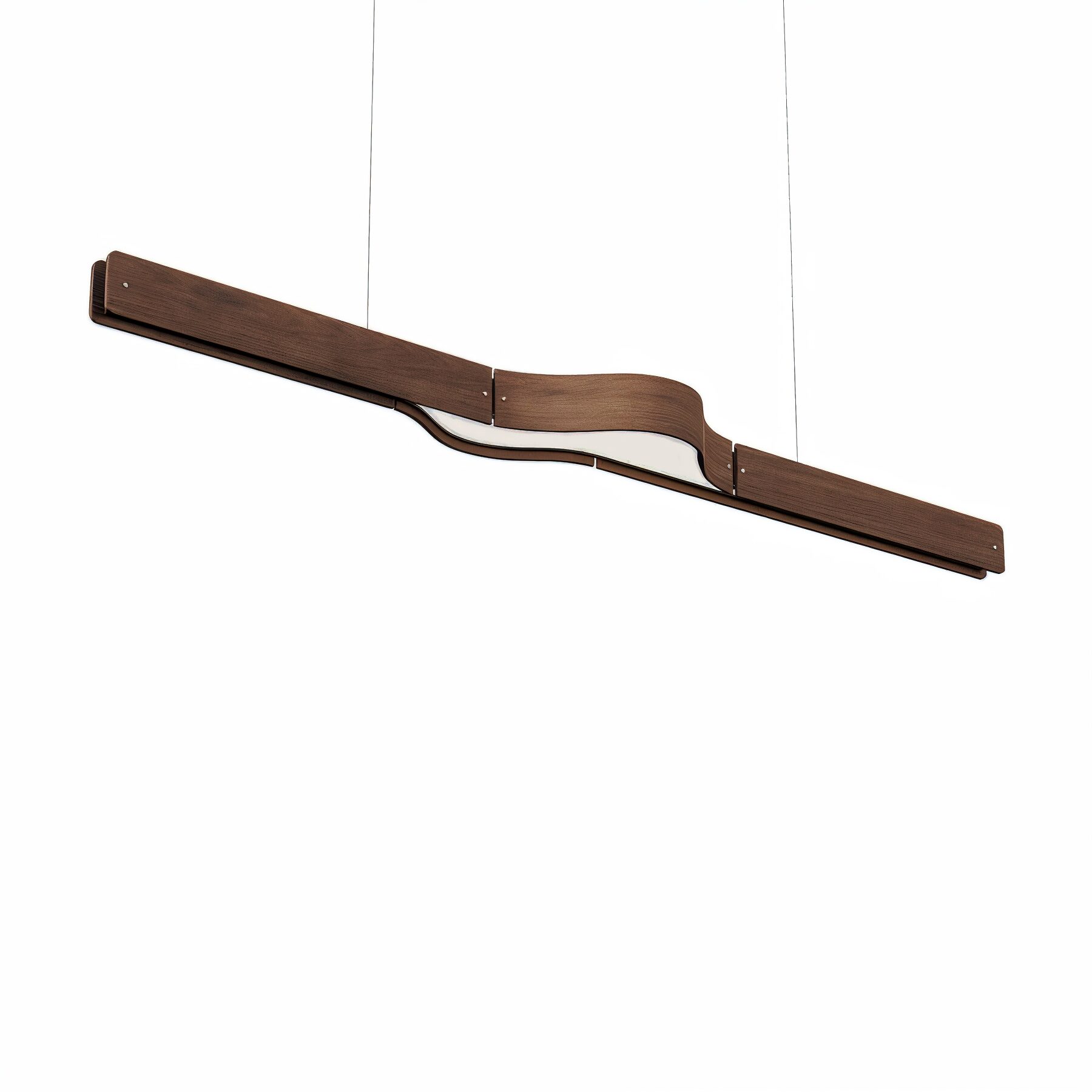 Деревянный подвесной светильник с оригинальным изгибом в центре. Отличается элегантностью и подойдёт как для дома, так и для офиса.