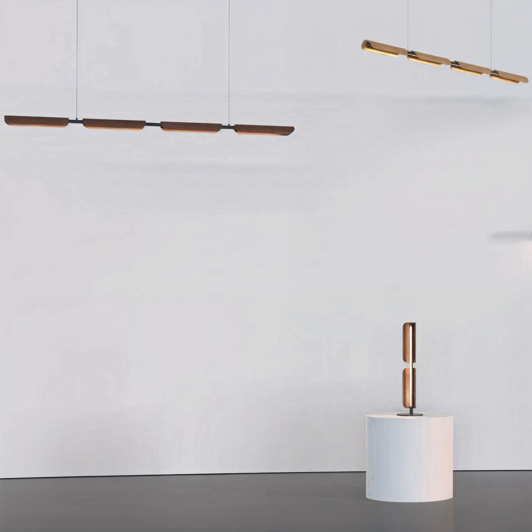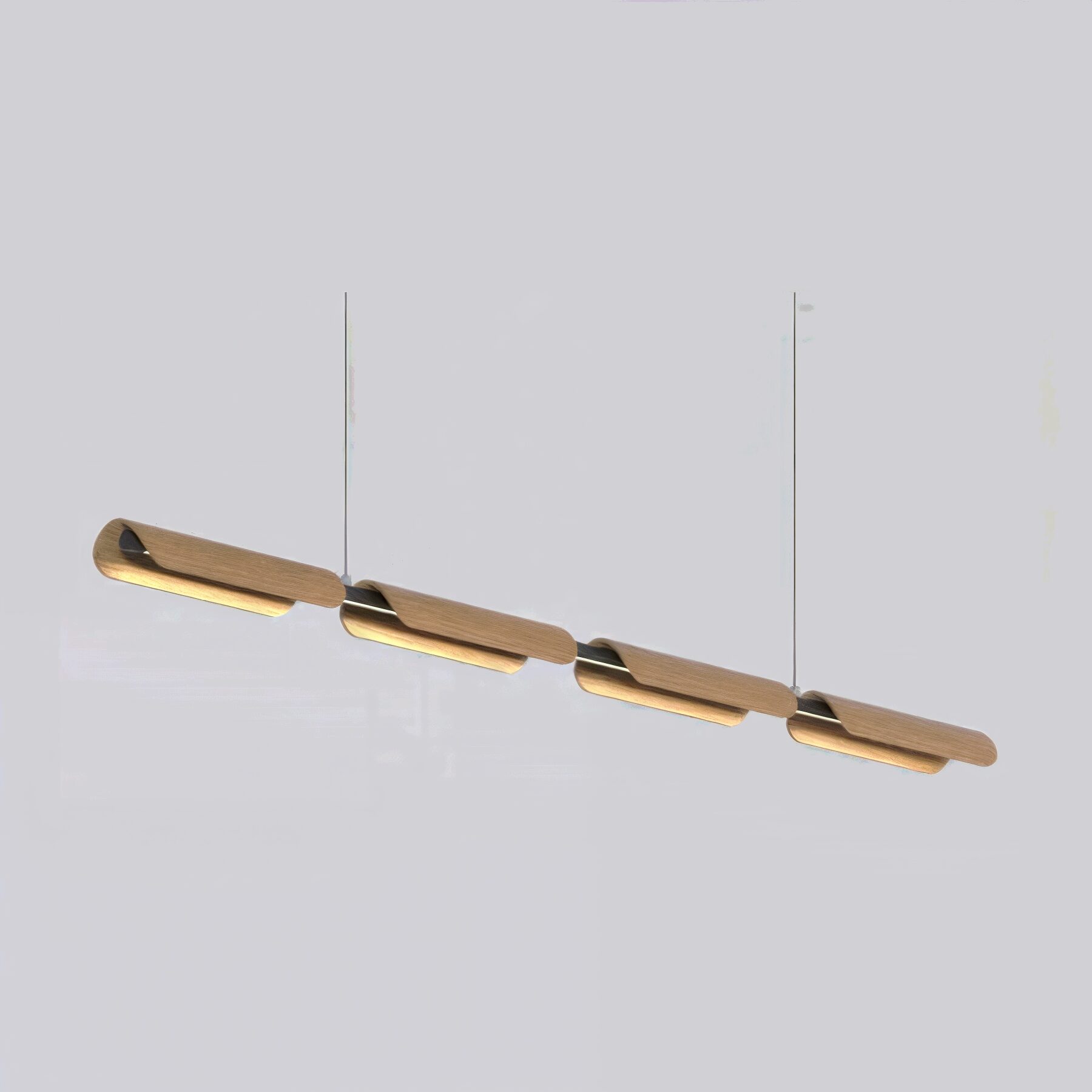 Линейный светильник с плавно изогнутыми деревянными элементами. Станет стильным акцентом над столом или рабочей зоной.
