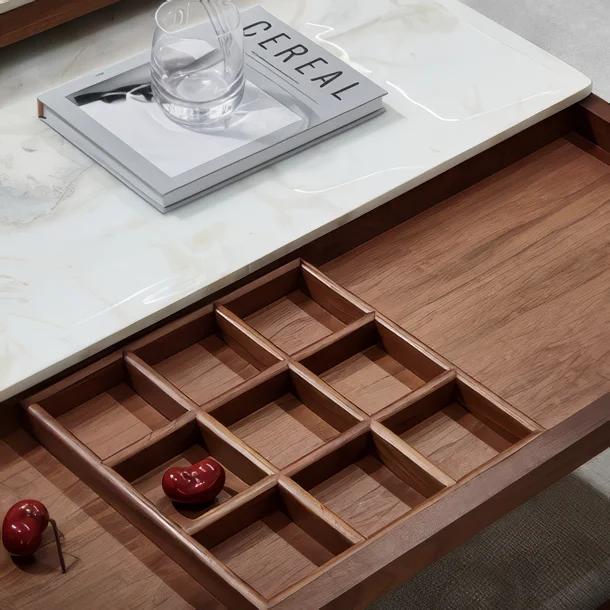 Уникальная конструкция с выдвижной секцией позволяет удобно хранить мелочи, благодаря